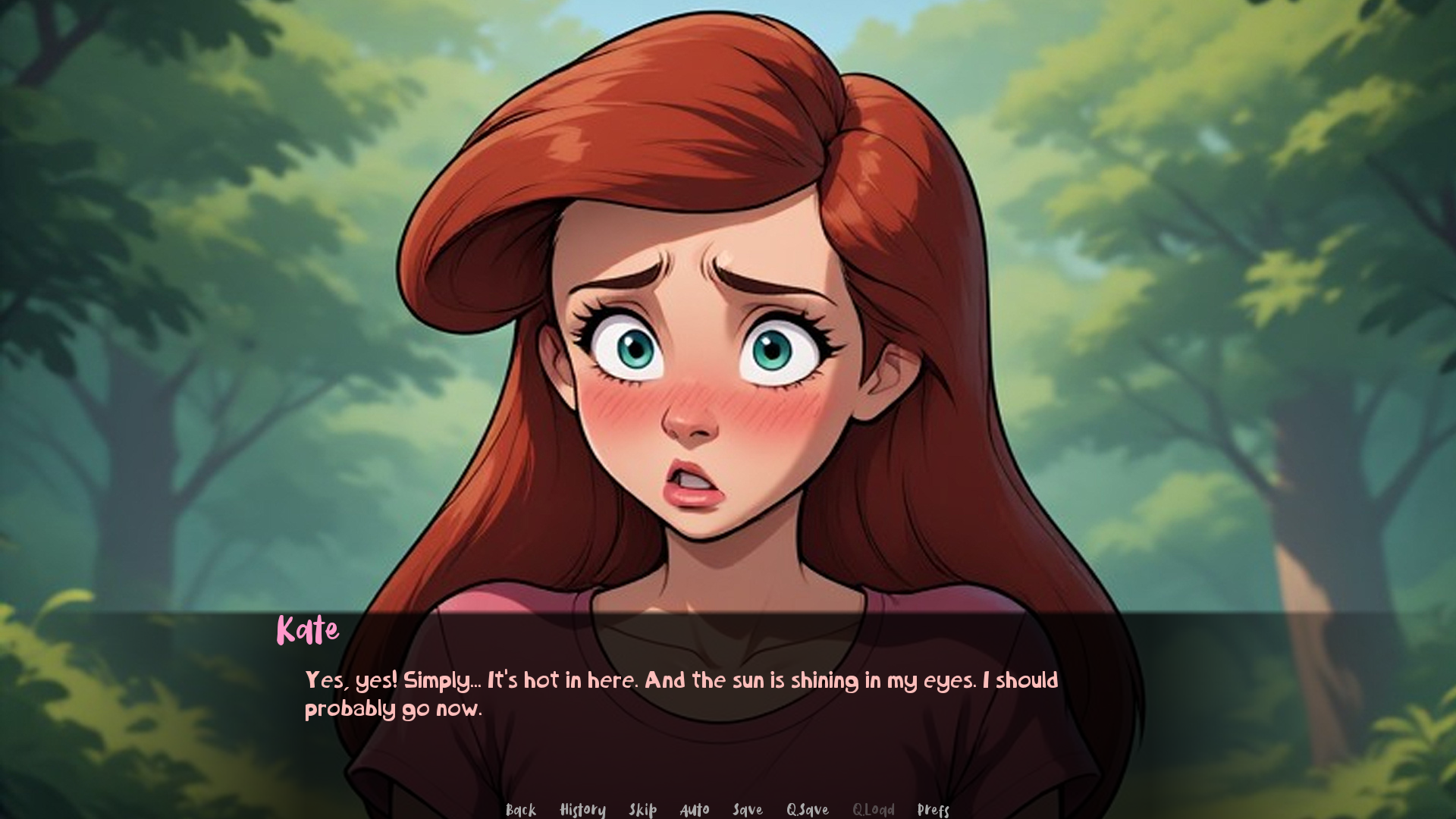 This is way more content than I expected from a "Version 0.0.1!" I just wish there were more choices, because the story has potential. I like how it goes back and forth between the boy's and the girl's POV. But the black guys, "Ben" and "Tyrone," don't look black. They just look like white guys with deep tans. Heck, "Tyrone" has red hair! Red hair on black guys is not a thing. If you can't render them with wooly hair like black people have, then you should just give them shaved heads. (In fact, I think shaved heads would be preferable, but that's just me.) That should fix the problem. Thank you.